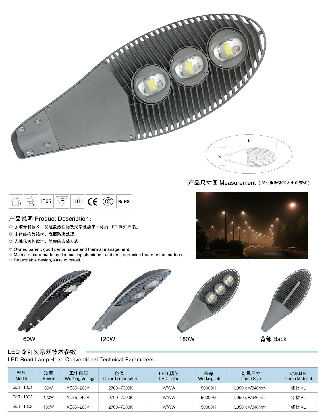 led路燈燈頭技術(shù)參數(shù):