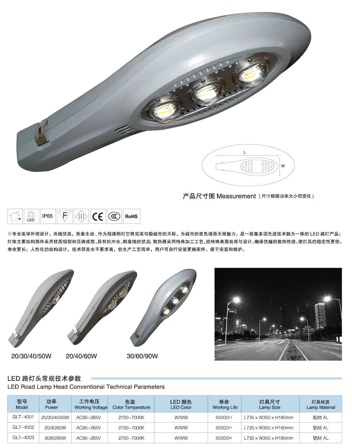 led路燈燈頭技術參數: