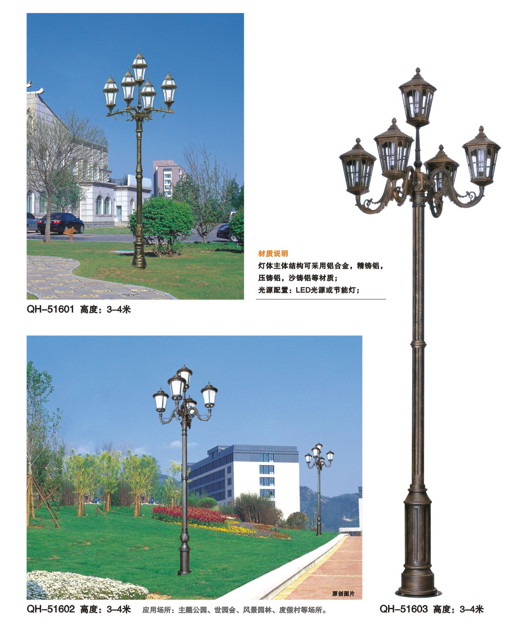 單頭庭院燈材質(zhì)說(shuō)明: